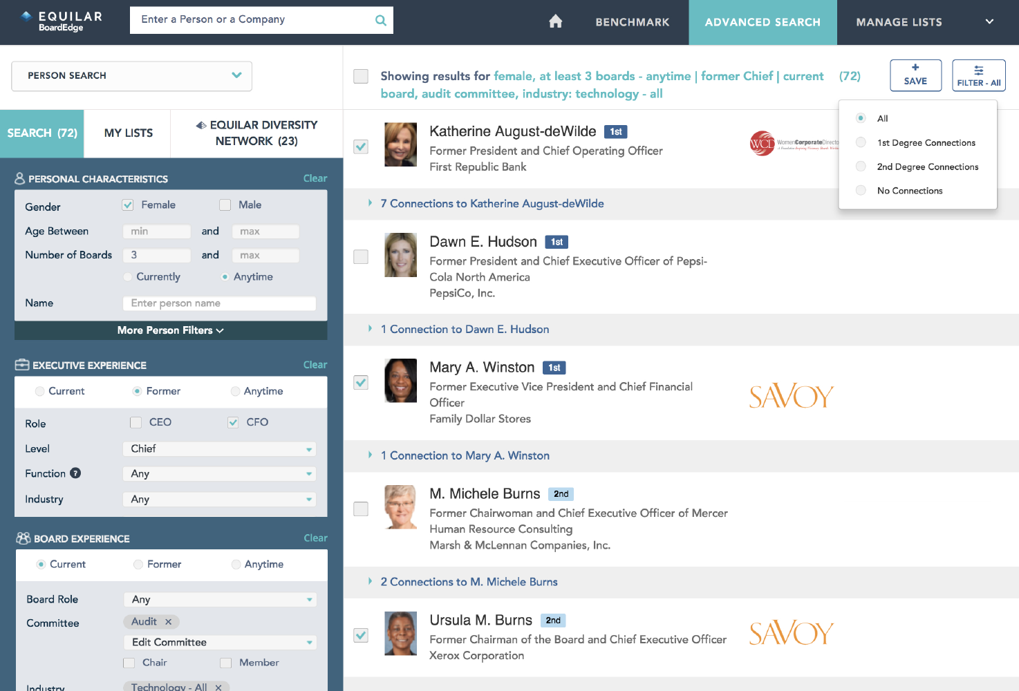 Across Corporate America, business leaders rely on trusted sources within their network when selecting advisors for their most visible and strategic assignments. When competing for new business, BoardEdge users quickly identify trusted referral sources in their networks to establish instant credibility with prospects to win new business